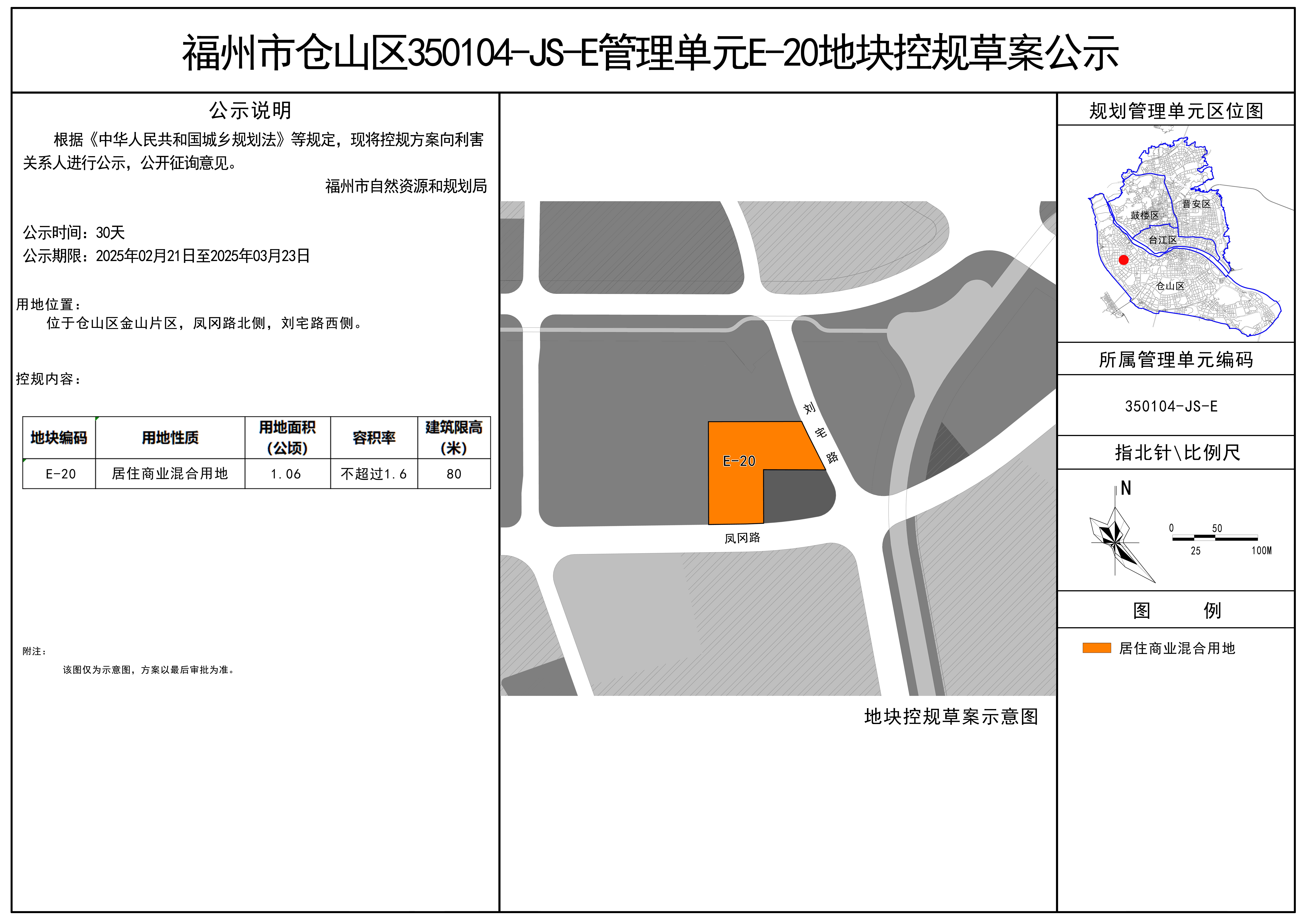附件:福州市仓山区350104-JS-E管理单元E-20地块控规草案公示图