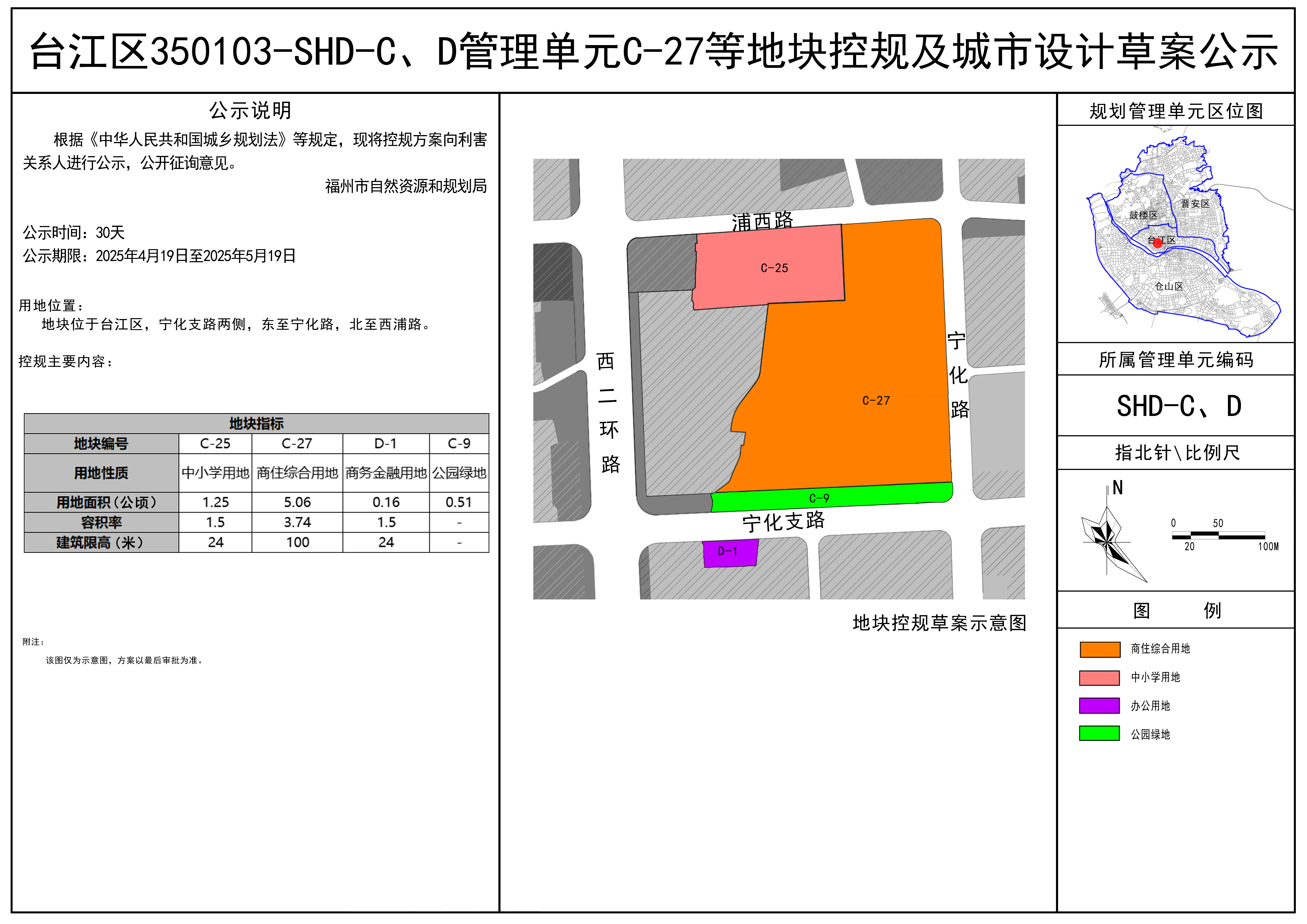 1.在公示期满后,福州市自然资源和规划局将于2025年5月20日下午3:30,在台江区宁化新村及周边地块征收分指挥部(原宁化幼儿园)召开控规草案听证会,收到听证通知的群众应按时参加听证会,否则视为放弃听证。