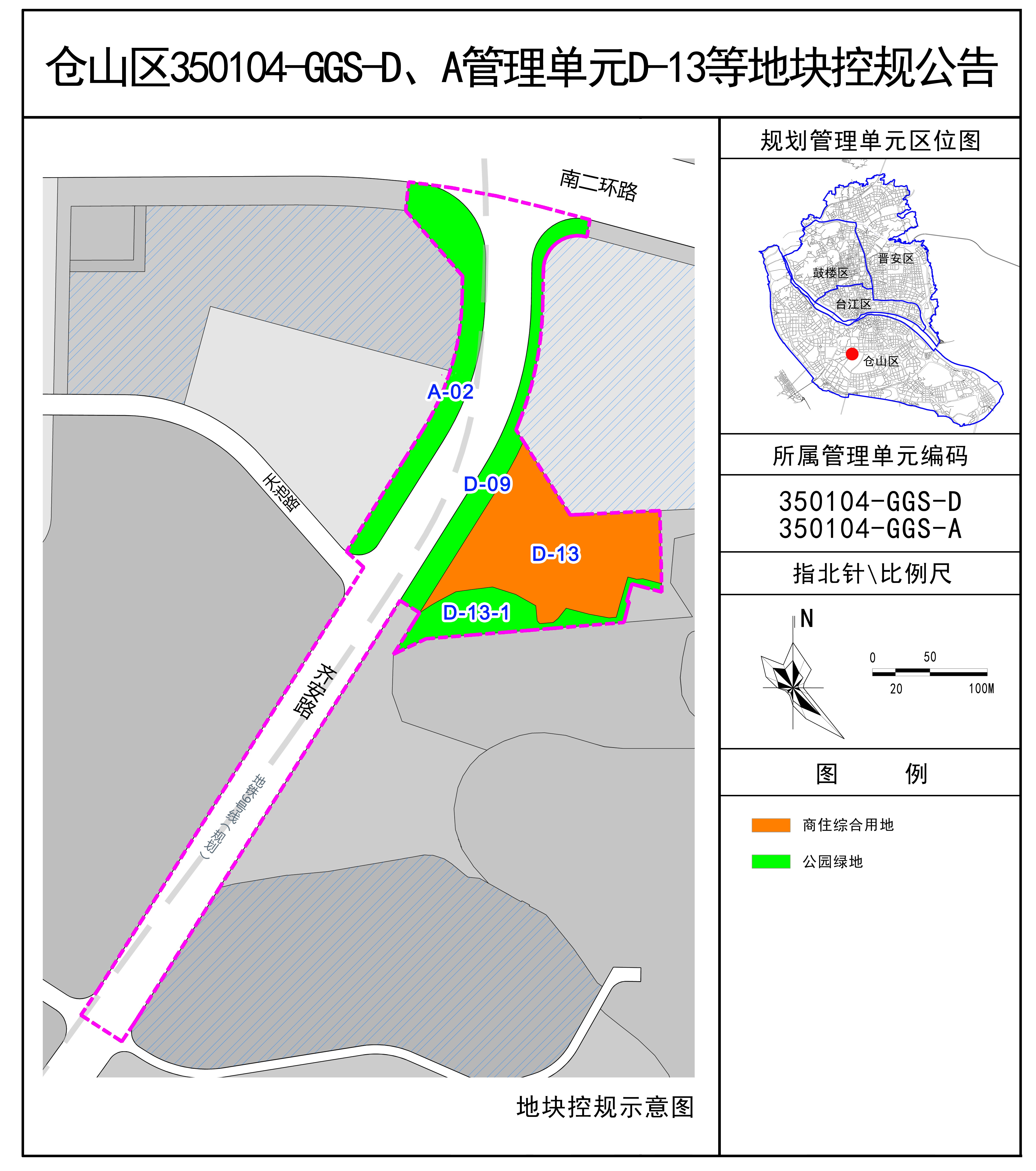 关于仓山区350104-GGS-D、A管理单元D-13等地块控制性详细规划的公告