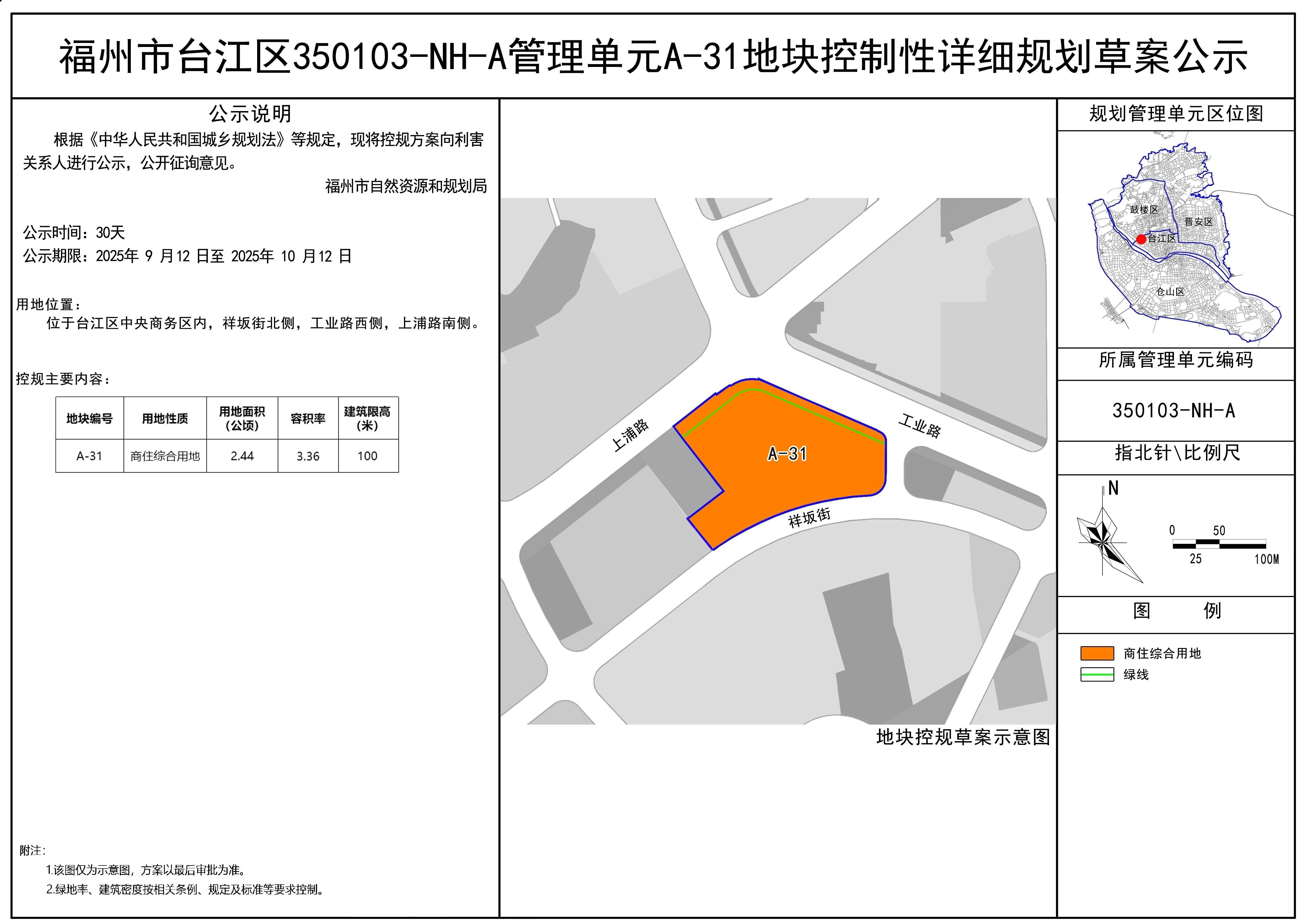 1.在公示期满后,福州市自然资源和规划局将于2025年10月13日上午9:30,在东部办公区4号楼507会议室召开控规草案听证会,收到听证通知的群众应按时参加听证会,否则视为放弃听证。