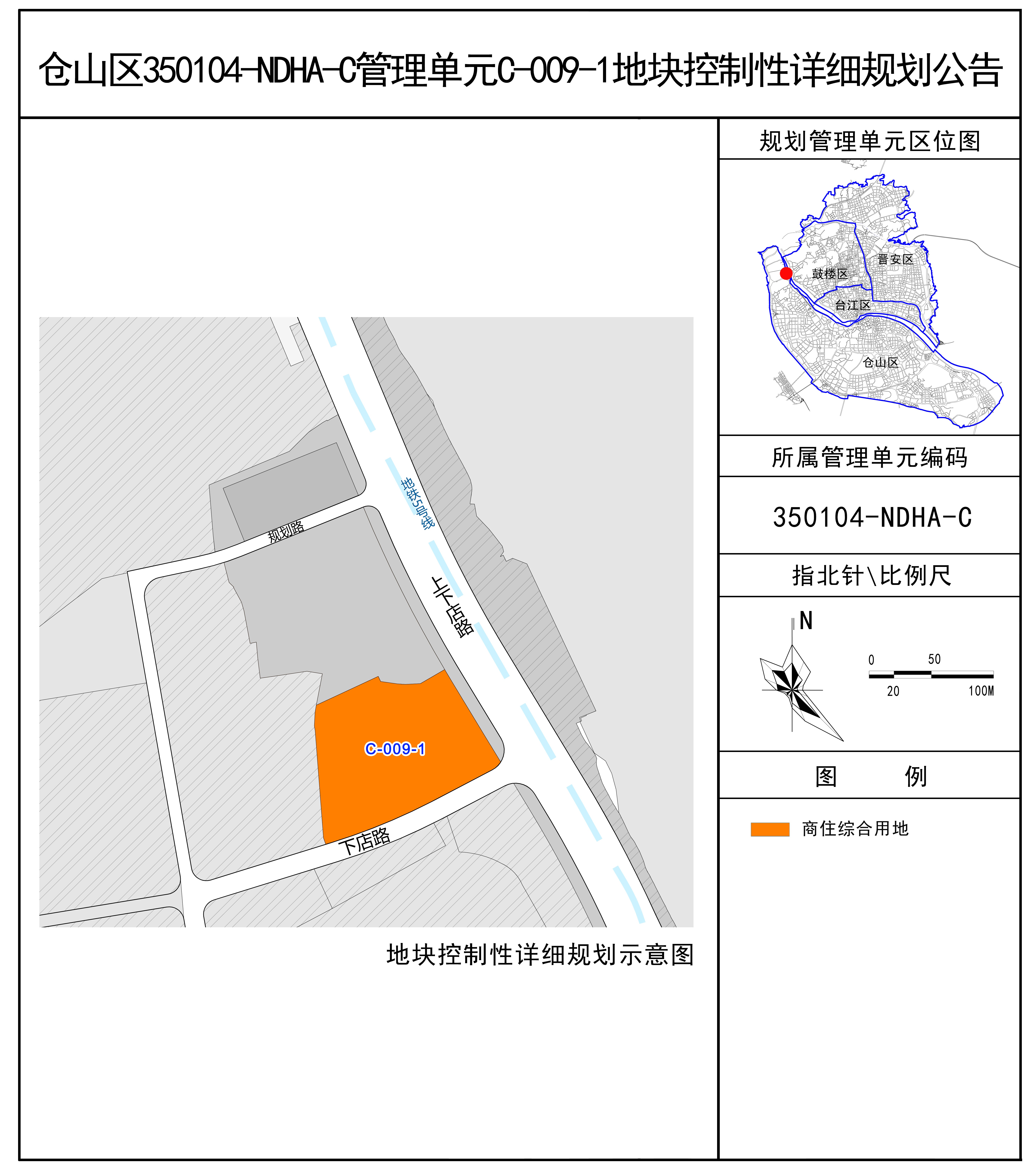 关于仓山区350104-NDHA-C管理单元C-009-1地块控制性详细规划的公告