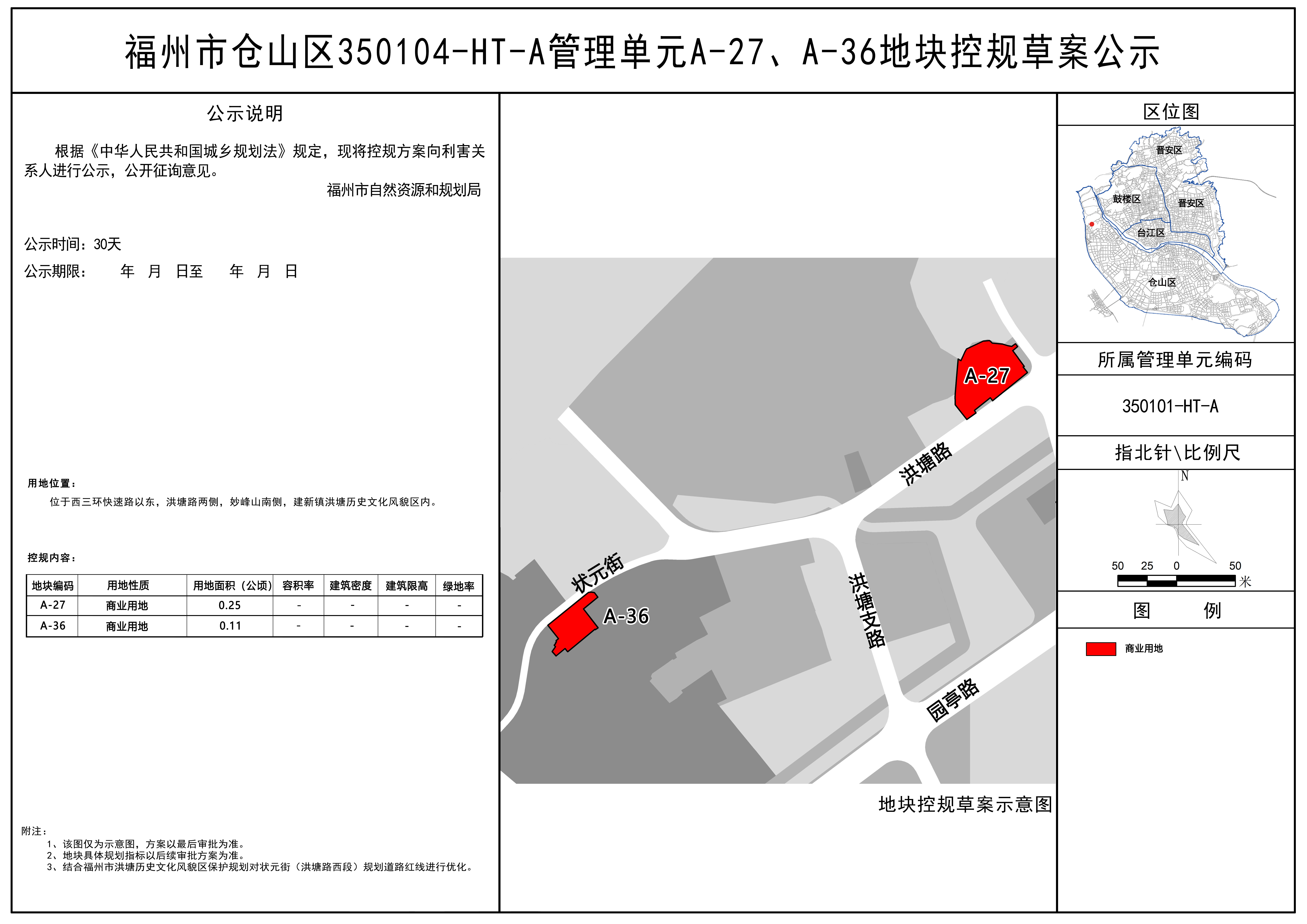 附件:仓山区350104-HT-A管理单元A-27、A-36地块控规草案