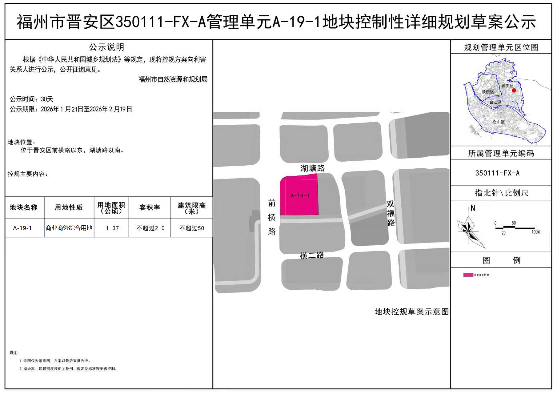 1.在公示期满后,福州市自然资源和规划局将于2026年2月24日下午3:00,在东部办公区4号楼507会议室召开控规草案听证会,收到听证通知的群众应按时参加听证会,否则视为放弃听证。