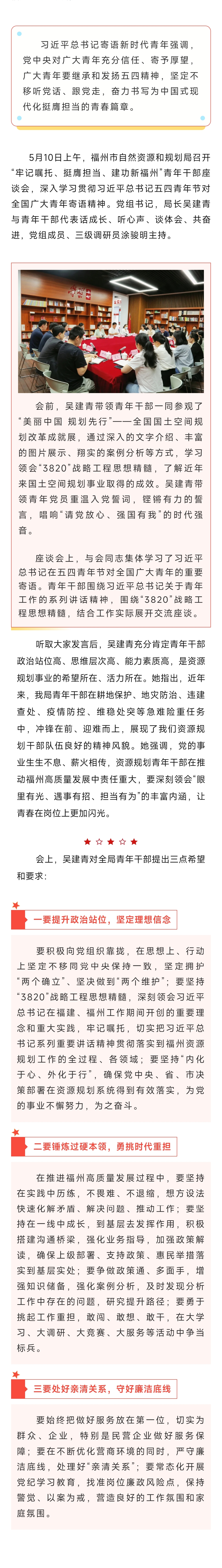 牢记嘱托、挺膺担当、建功新福州——福州市自然资源和规划局召开青年干部座谈会