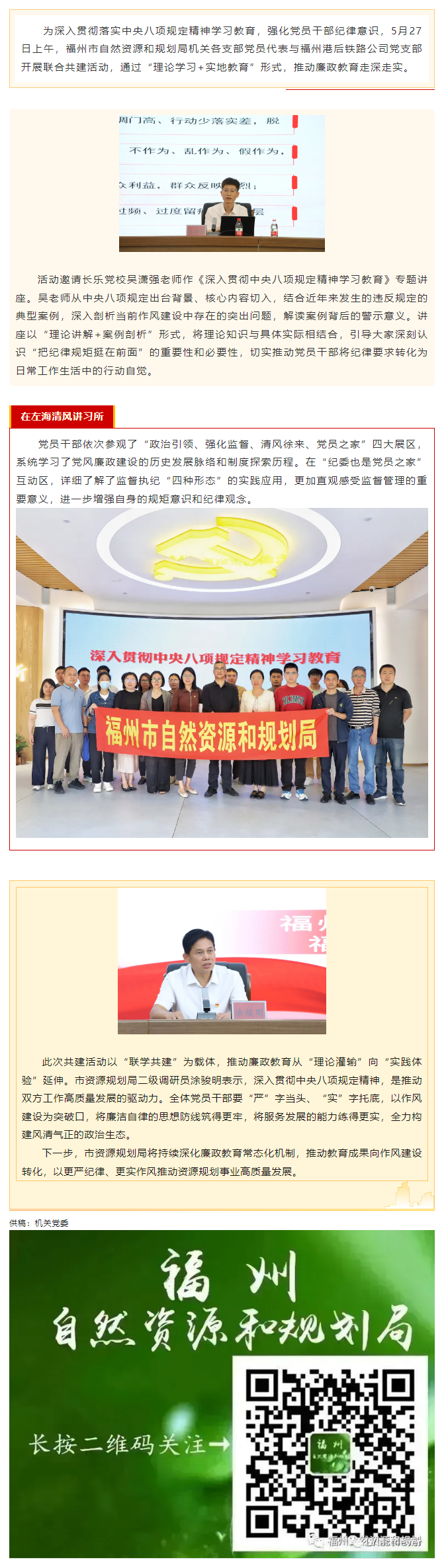 福州市自然资源和规划局开展廉政教育共建活动