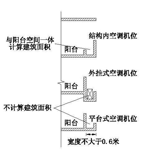 (二)空调板:与阳台空间一体设置的结构内空调机位,按阳台计算建筑面积。图示: