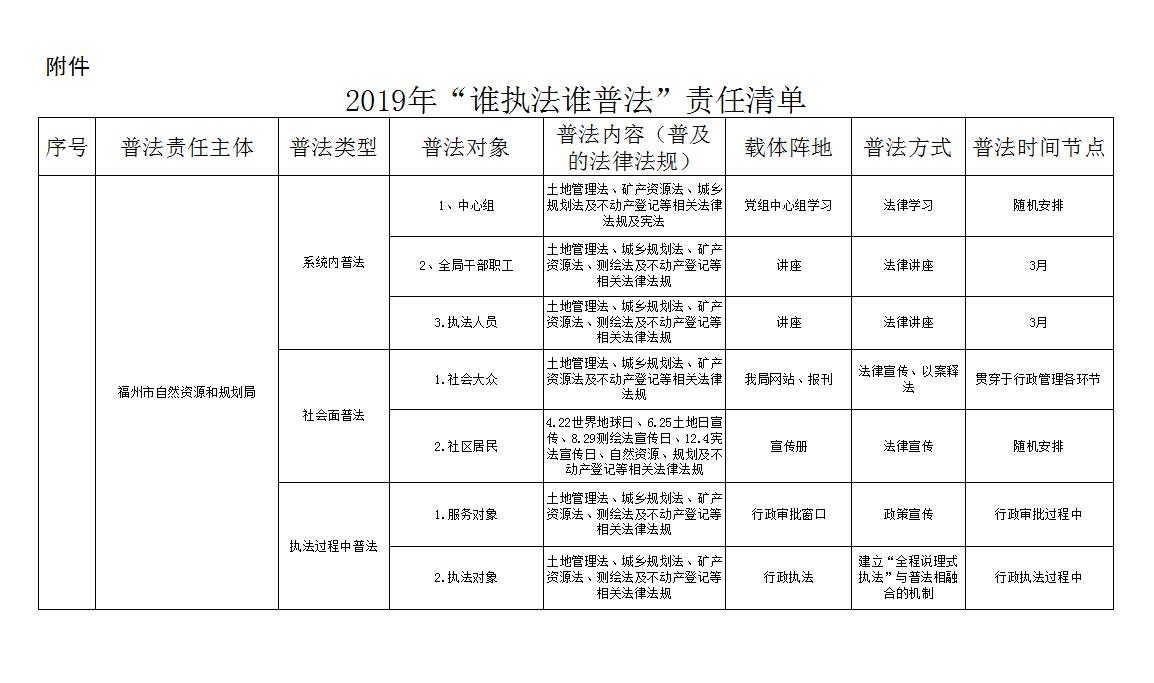 关于印发《福州市自然资源和规划局2019年“谁执法谁普法”责任清单》的通知