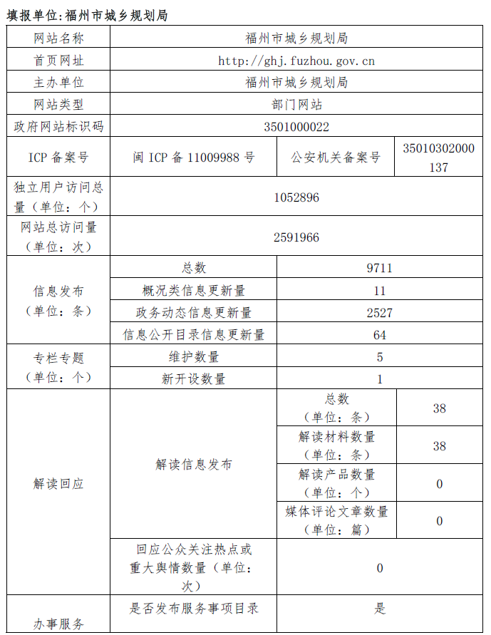 福州市城乡规划局2017年政府网站工作年度报表