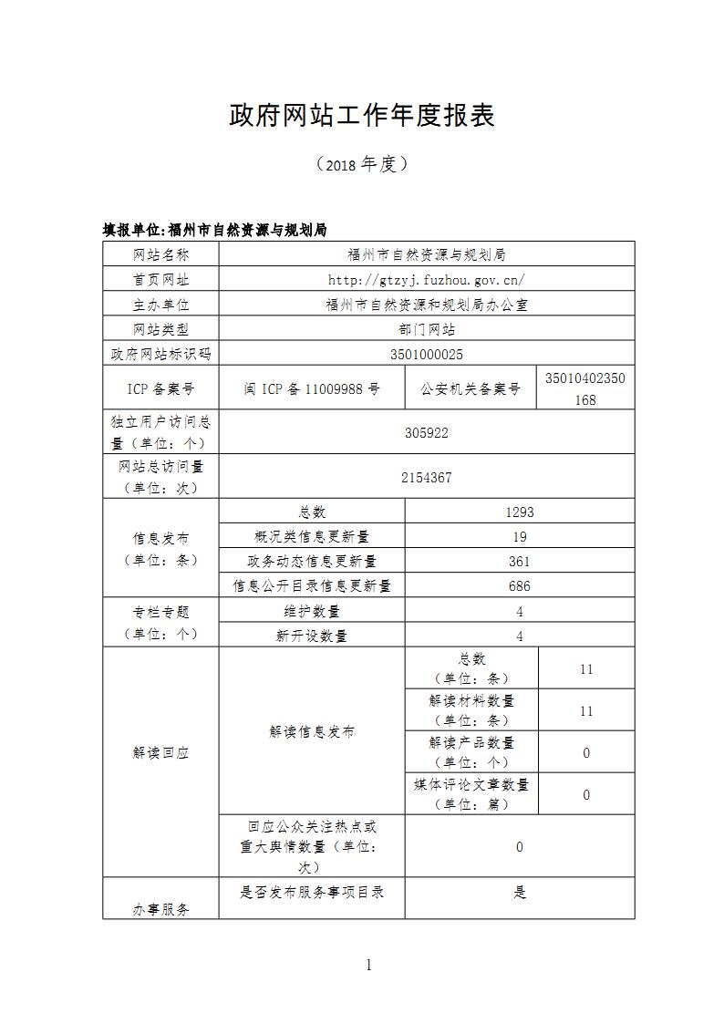 福州市自然资源和规划局2018年政府网站工作年度报表